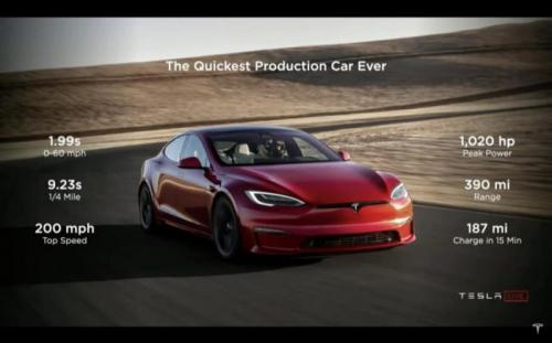 上个季度,特斯拉正式交付特斯拉Model S Plaid车型。该车型两秒内即可完成0-60英里加速;最高时速可达200英里/小时;续航里程约400英里,并且配合特斯拉V3超级充电桩,仅需15分钟即可增加187英里的续航里程。6月11日,马斯克曾表示,该车型的周产量将很快达到数百辆,但是要等到第三季度才能实现千辆的周产能。