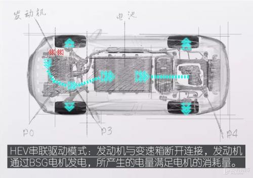新加入的高压BSG电机,在驱动电机驱动的同时,发动机还可以带动BSG电机发电,实现HEV串联模式,所以可以有效减少馈电状况的发生,有更强的保电能力。