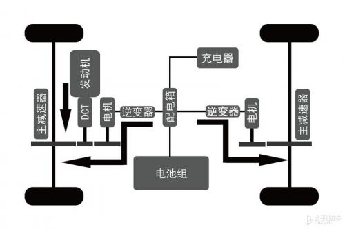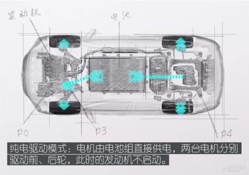 P4结构:电机位于车辆的后桥上,可直接驱动后轮,实现纯电行驶;
