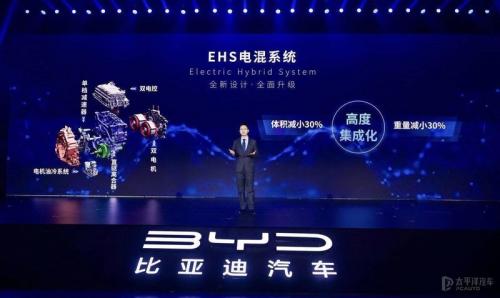 新一代的DM-i系统中拥有EHS超级电混系统,该系统可看作DM-i中的“大脑中枢”,可为发动机、发电机、驱动电机智能分配功率,该系统由双电机、双电控、直驱离合器、电机油冷系统、单挡减速器组成,从而取消了传统变速箱。因为E-CVT的引入,使车辆整体的行驶平顺性、燃油经济性、以及更好的NVH性能。
