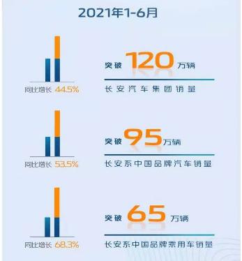 当然,长安汽车有这一底气,还是来自于其不断扩大的市场份额。7月8日,长安汽车公布了最新销售数据。数据显示,长安汽车6月整体销售17.3万辆,至此,长安汽车1—6月累计销量来到了120.08万辆,与此同时实现了44.5%的同比增长。