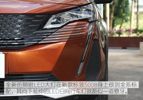 作为法系阵营的知名品牌,标致在一些年度设计榜单都能占有一席之地,因此标致最大卖点就是设计,新款标致5008的改款重点也是放在外观造型上。新车采用了最新一代锋锐设计,包含了向两边扩充的无边框设计,星动点阵式格栅、全新狮眼LED大灯+标志性的獠牙式日间行车灯。乍眼一看,这些变化和设计和同门兄弟标致4008的车型相似,如果不看引擎盖上的标致5008车型标识,一时间很难分辨出它和标致4008.