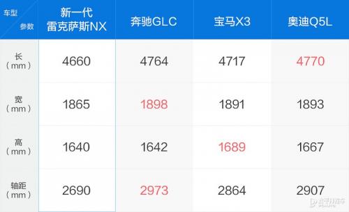 虽然相比现款有了一定的提升,但是各个尺寸面对同级别的BBA竞品还是不够看,车内的空间也只能说是够用。特别是轴距方面,尽管大家都是定位中型SUV,但是雷克萨斯的轴距长度则是人家BBA的紧凑车型级别,不知道NX何来的勇气定位自身为中型SUV。