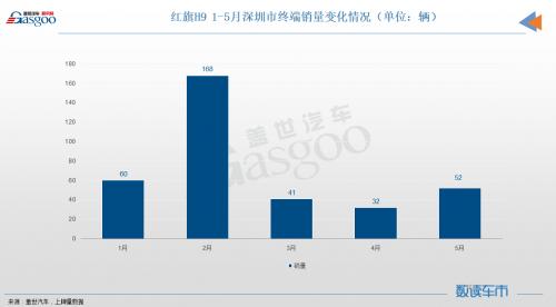 和红旗其他车型主要卖到北方城市有所不同,红旗H9在南方市场的表现也相当不错,前五个月销量第二高的城市就是个南方都市——深圳。事实上,2月份让北京唯一一次失去销量冠军城市的就是深圳,深圳也是北京之外,唯一一个红旗H9月销量突破过百辆的城市。2月红旗H9在深圳市的销量为168辆,在红旗H9分城市的月销量中可以排到第三名。1-5月,红旗H9在深圳共计售出353辆。