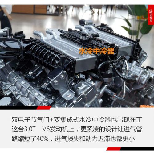 由于采用了V6布局,所以这台发动机无论是涡轮增压器、中冷器、节气门等等都是双份的。