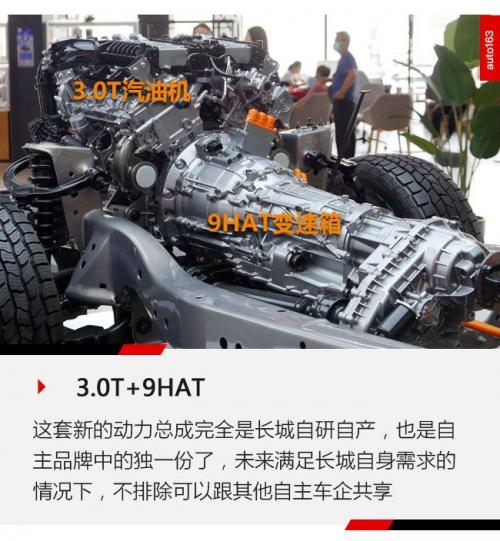 目前长城的新高端动力包括两套动力总成,由3.0T增压发动机分别搭配9AT和9HAT(插混)变速箱,动力输出也是非常强悍: