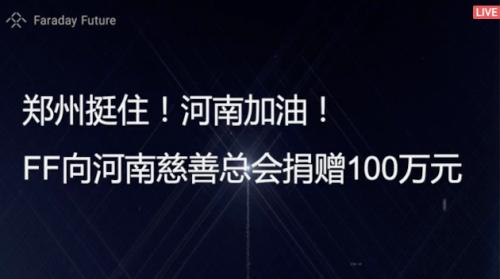 在敲钟仪式直播最后,FF宣布为河南捐款100万元