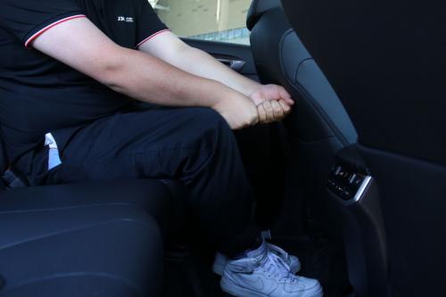 实际体验下来,我176cm身高坐直后腿部还有两拳余量,完全可以自由活动。头部空间也比较充裕,有以拳半左右余量,再配合软硬适中的填充物和符合人机工程学的座椅设计,使后排乘坐舒适度提升了不少。另外,得益于1930mm车款,让这台车后排同时乘坐三个成年人也并不感觉拥挤。
