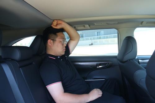 来到后排,虽然可以感受到第四代汉兰达在空间表现上有所提升,但是却没有达到我在看完车身尺寸后的预期,感觉变化并不明显,我想这可能是由于更换到TNGA架构所导致的,不过没有关系,毕竟它本身就是标杆,就算保持原有空间表现也是同级别领先水平。
