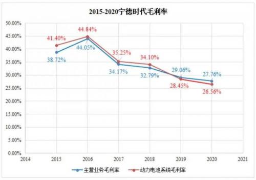 在4月27日发布的2020年年报中,这一问题已经有所显现:宁德时代2020年动力电池单价为0.89元/Wh,较2019年下降5.3%,但小于前一年降幅18.1%。同时从营业成本推算,动力电池单价成本为0.65元/Wh,较2019年仅下降3%,而前一年下降了11.6%。
