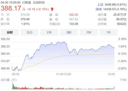 客观来看,宁德时代在2021年第一季度继续保持了其在2020年的“赚钱能力”,2020年宁德时代一路狂飙的股价也侧面证实了投资人的青睐。今年1月7日,宁德时代股价一度涨至413.2元的高点,总市值9800亿元。即便当前宁德时代市值较高点蒸发近千亿元,但宁德时代股价在2020年的增长率依旧超过200%。截至4月30日收盘,宁德时代股价为388.17元/股,总市值9042亿元。