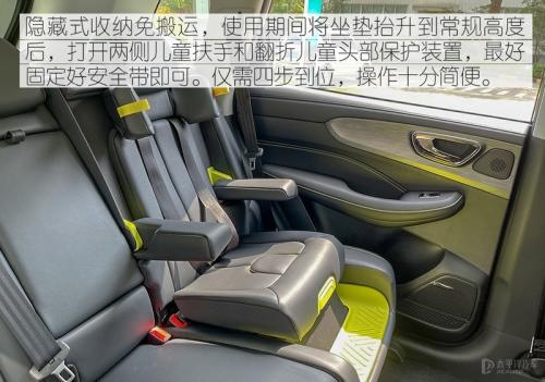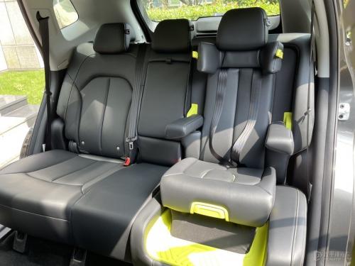 值得一提的是,由于是嵌入式设计,所以一体式儿童座椅没有过多占用后座空间,也不影响后排的平整度,重要的是也不会影响后排座椅按比例放倒,可确保后备箱储物空间。