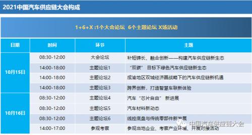 围绕行业关注话题,供应链大会设置6个具有针对性、各具特色的主题论坛。包括:“‘双碳’目标下绿色汽车供应链新生态”、“成渝地区双城经济圈战略下的汽车供应链新机遇”、“跨界创新,打造智慧车联新体验”、“汽车‘芯片自由’新进展”、“汽车材料新动态”、“线控底盘与传统零部件新发展”六个主题论坛。主题论坛以主题发言为主,辅以圆桌对话,听众互动等,组织形式更加多样化。