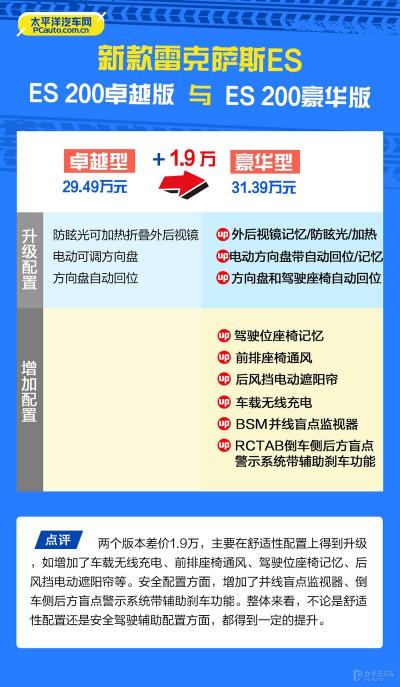 ES200(2.0L)版车型配置差异分析