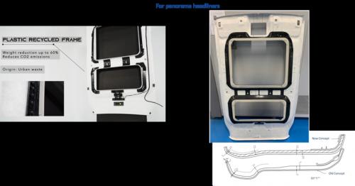 聚酯PBT-ASA-PET材质的骨架,采用玻纤增强来提高零件刚度和稳定性,且经过丙烯腈/苯乙烯共聚物改性。全塑料件设计的主要优点之一是改变将框架装上顶棚的工艺而省却了额外的工艺步骤、改善了公差装配并最终提升了零件成品的感知质量。此外,将框架装入顶棚基材中的新工艺无需使用任何溶剂且不产生有害排放物。