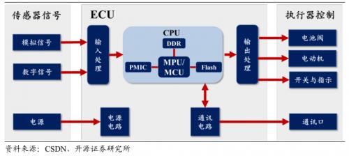 在目前大部分传统汽车采用的分布式E/E(电子电气)架构中,ECU在汽车发动机、变速箱、安全气囊等各底层执行零部件中广泛应用,承担决策功能。而在这样的架构下,要实现智能化功能的升级,就需要增加ECU的数量。