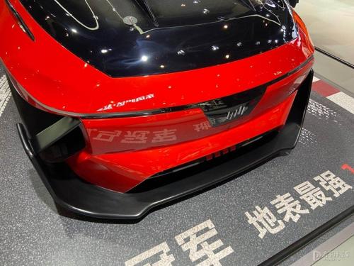 威马冠军在量产版威马W6的基础上,完成了从造型设计到动力性能的全面升级。该车采用了全新的“红与黑”车身涂装,并使用了大量空气动力学设计,夸张的宽大碳纤维尾翼能够引导气流,提供可观的下压力。