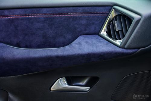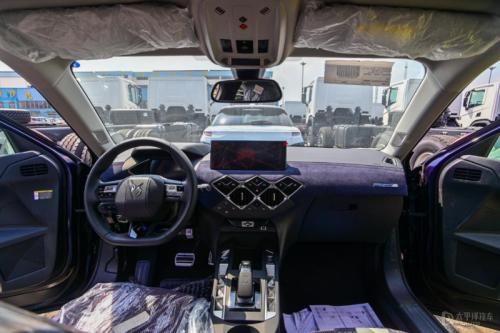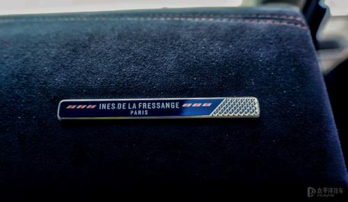 走进车内,新车采用蓝色软质材质加上红色缝线缝制打造的中控,呈现出高级的质感,且拥有极大的视觉反差。车内依然采用黑色真皮作为主调,中控台上的“Ines de la Fressange”徽章格外瞩目。