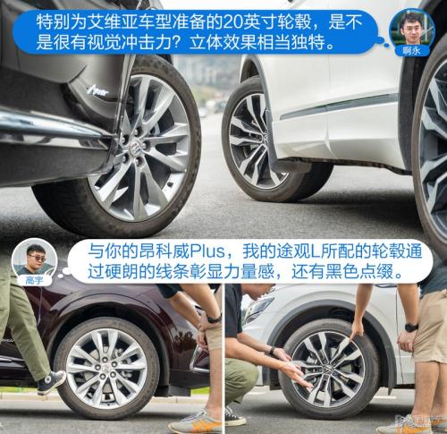 “有没发现昂科威Plus的轮毂设计很特别?”啊永问,“它转动起来的时候你可以观察一下,会有多种颜色变换的效果”。昂科威Plus艾维亚配备了马牌PC6轮胎,低滚阻的设定让它降低整车的油耗,同时兼顾舒适性和操控性。途观L配备的韩泰万途仕系列轮胎则更倾向于抓地力性能,舒适表现会不及马牌PC6。