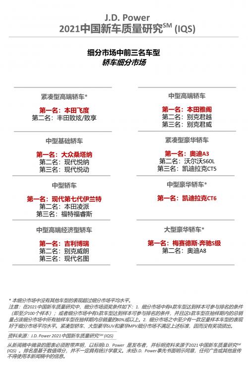 车型层面,共有12个品牌的17款车型在2021年中国新车质量研究中摘得17个细分市场奖项。