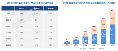 在多重因素驱动下,盖世汽车研究院分析指出,预计2025年国内乘用车HUD产品配套渗透率将接近40%,前装配套规模将超过900万套。