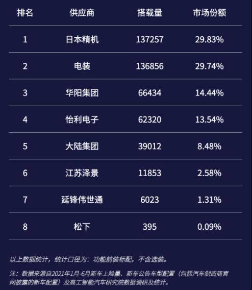 高工智能汽车研究院数据显示,2021上半年W-HUD供应商市场份额方面(依据上险量统计),日本精机、电装、华阳排名前三。其中,华阳市场份额增速明显。8月13日,华阳集团(002906.SZ)在投资者互动平台表示,公司HUD产品已在长城多款车型、东风日产启辰星上量产,公司持续拓展新客户,今年以来获得长城、长安、广汽、北汽、奇瑞、越南VINFAST等客户的新项目。