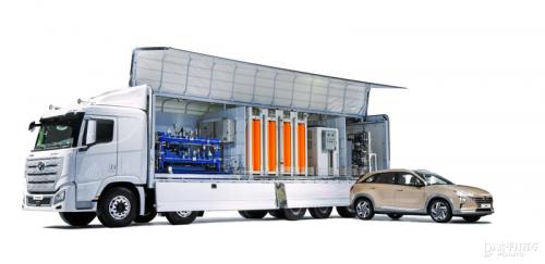 此外,移动型加氢站(H Moving Station)是配备氢燃料电池车加氢设备的重型车辆,可为多达25辆NEXO的氢燃料电池系统进行充氢。应急救援车(RHGV,Rescue Hydrogen Generator Vehicle)可为处于偏远崎岖地区的车辆提供充电救援,可同时进行单相220V和三相380V供电。