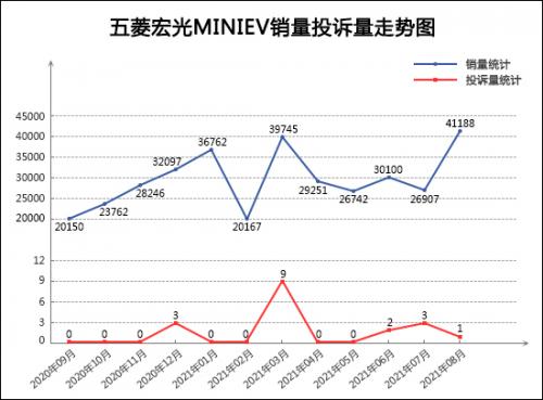 经过了近四个月的蓄势盘整,五菱宏光MINIEV终于在8月份迎来了高光时刻,不仅销量首次突破4万辆大关,同时还力压东风日产轩逸,一举拿下国内轿车市场销冠。同时,五菱宏光MINIEV在2021年1-8月的累计销量也突破25万辆,在国内轿车销量排行榜中超越上汽大众朗逸排名第二位。从其近一年来的销量走势来看,虽然波动较大,但月均销量基本上保持在接近3万辆的水平,可以说创造了国内新能源市场中的销量“神话”。事实上,自五菱宏光MINIEV推出后,也一直在进行着新车型的更新,除了今年4月份推出的马卡龙版外,明年还将推出敞篷版车型。正是通过车型的不断更新,宏光MINIEV牢牢抓住了当下年轻消费者,尤其是女性消费者的的消费痛点。值得一提的是,上市一年来,五菱宏光MINIEV的月投诉量除个别月份略有异动外,大部分月份均保持着零投诉的佳绩,短期内的质量口碑表现值得肯定,望再接再厉。随着4万辆的天花板被击破,五菱宏光MINIEV的销量将有望借势走高,未来市场表现令人期待。