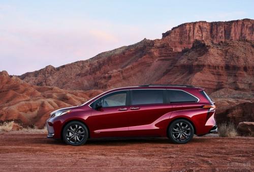 参考北美在售车型,外观上,全新SIENNA采用了丰田最新的设计理念,官方表示其造型源自日本新干线“子弹头列车”,因此整体设计大胆而又激进,并塑造出多个大块面的“肌肉”。前脸上,下格栅得到了史无前例的大面积,内嵌蜂窝状纹理(普通版为多条横杠设计),营造出十足的运动感;两侧不规则的刀锋LED头灯组,造型狭长而又激进,并通过一条镀铬饰条将“放荡不羁”的轮廓展现的淋漓尽致;此外,在包围两侧还设有硕大的空气导流槽,有效改善了整车的空气动力学表现。