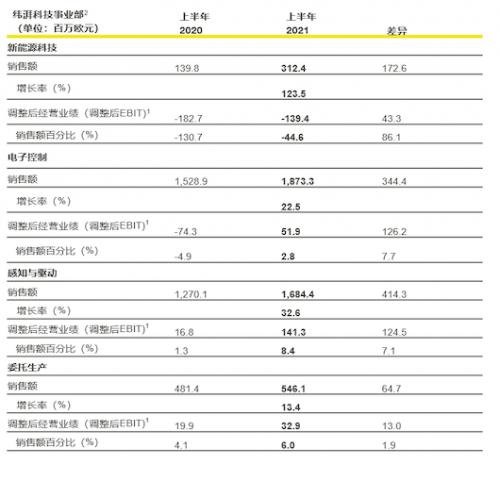 虽说疫情的不利影响还在持续,但纬湃科技却取得了十分出色的成绩,今年上半年,纬湃科技的销售额达到了44亿欧元,同比增长了29%;调整后的息税前利润为8,420万欧元(去年同期为负2.181亿欧元),调整后的息税前利润率为1.9% (去年同期为负6.4%)。尽管受到原材料短缺的不利影响,调整后的息税前利润大幅增长得益于产能的扩大以及实施严格的固定成本管理方案。