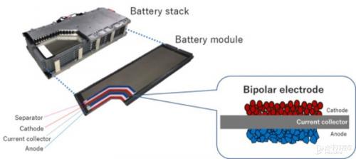 双极性镍氢电池的原理是在中间的集电体两侧,分别布置了正极和负极材料,这就构成了所谓的「双极性」。首先最显著的优势就是节省空间,省去了电芯外壳体和空间的占用。