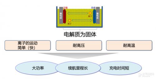 全固态电池就是将固态电解质完全取代掉电解液和之间的隔膜,因为电解质呈固态的形式,大幅提升电池的能量密度,在相同体积的情况下拥有更好的续航里程。