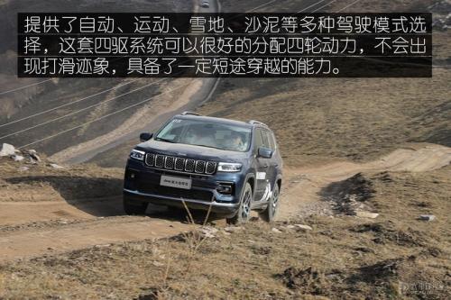 大指挥官的四驱车型搭载一套Active Drive适时四驱。厉害之处就在于可在0.1秒内完成两驱/四驱切换,最大可实现0-100%的扭矩动态分配,当系统检测到需要切换四驱的时候,车辆即可瞬间切换四驱最强状态,当然你也可以通过驾驶模式的切换来进行手动调节,根据驾驶模式的不同,对于前后轮扭矩分配也会有相对应的调整,总而言之,就是帮助你更加适应当前路况。