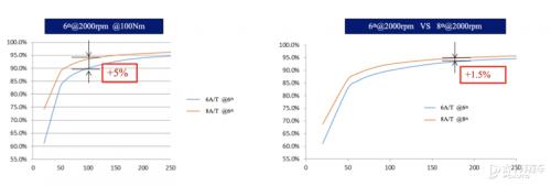 相比6AT低扭时效率提升5%,高速高扭时效率提升1.5%