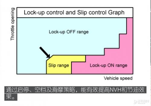 爱信8速手自一体变速箱通过超长行程液扭、启停、空挡控制及滑磨策略,有效地提高了节油及NVH效果。