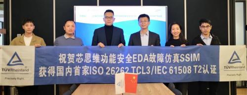 芯思维CEO刘志鹏博士表示:“芯思维的SSIM软件产品能成为国内首个获功能安全领域两项重要标准ISO26262和IEC61508双认证证书的EDA软件工具,我们深感荣幸。这也充分显示了芯思维在EDA软件开发和安全可靠性管理方面的实力,是芯思维打造国产EDA仿真平台的关键里程碑。我们将以此为契机,在功能安全芯片,尤其是汽车电子芯片方面不断发力,为实现国内安全可靠性芯片设计提供支持。”