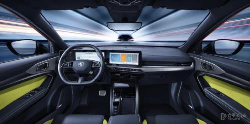 新车方向盘上下都采用了平底设计,一键启动按键也被安排在四点的位置。配合门板和座椅上的荧光黄材料,给车厢带来一些运动气息,很容易勾起驾驶欲望。而围绕着中控台加入的黑色和银色饰条也给车厢内部带来一定程度的质感提升。