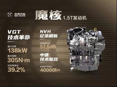 诞生于魔核动力平台的1.5T发动机,于行业率先实现量产搭载VGT增压器技术,凭借138 kW最大功率、305N.m最大扭矩,怠速噪声仅为57.5dB,以及高达39.2%的超高热效率的巨大优势,在众多竞品中脱颖而出。