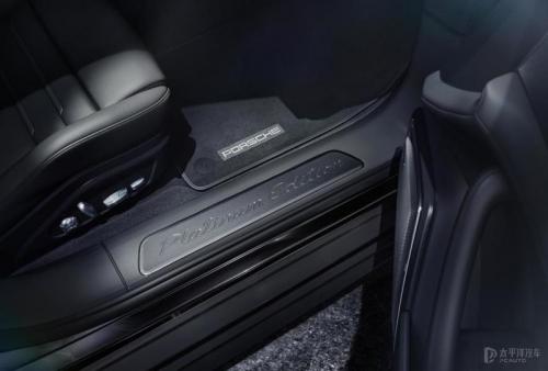 特别版车型的奢华格调也延续到内饰中,包括GT运动型方向盘,前排座椅通风功能,带舒适进车功能的电吸门,带记忆功能组件的前排舒适型座椅(14向,电动),后排座椅加热,BOSE声音响系统,黑色拉丝铝合金内饰组件,头枕上的保时捷盾徽。同时,内饰中也不乏表明身份的专属设计,如黑色拉丝铝合金车门槛护板上的Platinum Edition标记。所有Panamera铂金版车型的仪表板处均标配模拟时钟。