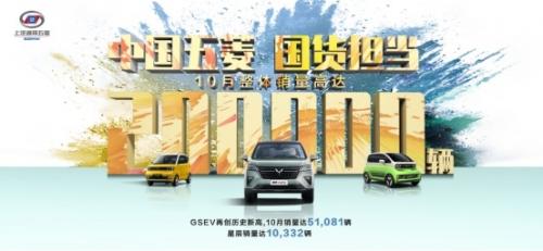 新能源产品方面,上汽通用五菱GSEV系列车型延续此前强劲的市场表现,10月销量达51,081辆,环比增长39%,同比增长112%。其中,连续14个月稳居中国新能源销冠宝座的宏光MINIEV月销达到47,834辆,同比增长131.9%;据乘联会公布的数据显示,10月全国A00级市场总销量为9.4万辆,上汽通用五菱GSEV系列产品销量达到5.1万辆,占据整个细分市场的半壁江山。