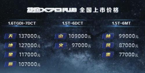作为事件的主角捷途X70 PLUS是去年10月18日上市的新车型,当时共推出天、地、山、火等9款车型,指导价为7.7-13.7万元,提供1.5T+6MT/6DCT、1.6TGDI+7DCT三种动力组合。
