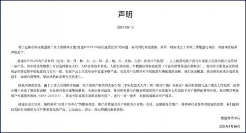 汽车信息网5月10日讯,捷途营销中心针对近期部分捷途用户所反馈“捷途X70 PLUS存在虚假宣传”的问题做出声明回复。在声明中,捷途表示是上市发布会表述不够严谨,而引发用户及媒体对不同版型车辆配置的误解。