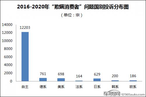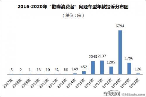 从车型属性来看,SUV四类问题的投诉总量明显高于其他车型,占比达到63.6%,紧凑型车占比同样较高,为27.3%。从国别来看,自主品牌四类问题的投诉总量占比已经超过八成,而德系、美系、日系占比相对较为接近。从车型年款来看,2019款四类问题的投诉总量占比最高,达到45.8%,2016款和2017款占比同样较高,相比之下2020款和2021款车型占比较低。通过以上数据不难看出,欺瞒消费行为主要存在于自主品牌SUV车型中,且以2016款、2017款和2019款车型为主。
