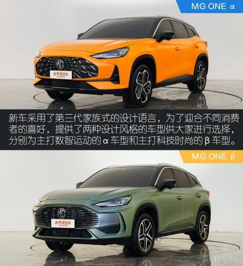 MG ONEα前脸采用独立的立体格栅设计,并使用了钨钢电镀的材质,使整体的质感更显独特。而MG ONEβ车型的前脸则拥有巨大的中网设计,使新车的横向宽度进一步的拉伸,强化了整车扎实的车身姿态。