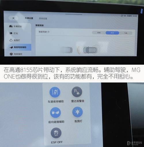 内置全新一代斑马智行系统,采用高通最新的骁龙8155芯片,系统响应、语音操控将更加精准流畅。值得一提的是,新车加入了雅马哈音响,并一体式运动座椅的头枕部分加入一个扬声器。智能驾驶方面,新车搭载了MG PILOT3.0智能驾驶辅助系统,包括的功能非常完善,遗憾的是这次车机系统还不能激活,无法实际体验。