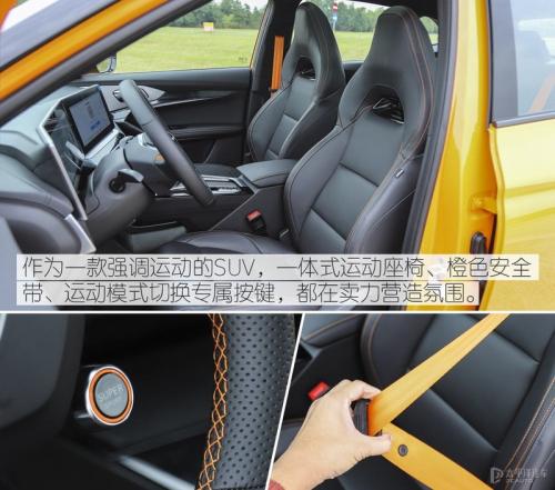 而且细节也没有忘掉,搭配的饰板面料、一体式运动座椅,上下扁平的方向盘,一看就非常运动。给人感觉就是不惜一切代价打造运动化智能座舱。其实,这种方式非常极端,感觉无所不用其极。但也得承认,确实挺对年轻人的口味的。那既然达成这个效果,那就说明这个设计,至少对于这辆车来的定位还是比较成功的。