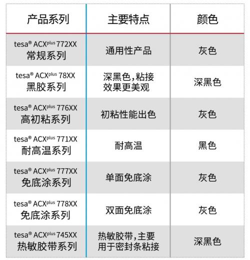 在汽车外饰相关应用中,德莎提供7大主要丙烯酸泡棉系列,厚度覆盖0.4mm至1.5mm,满足不同应用场景