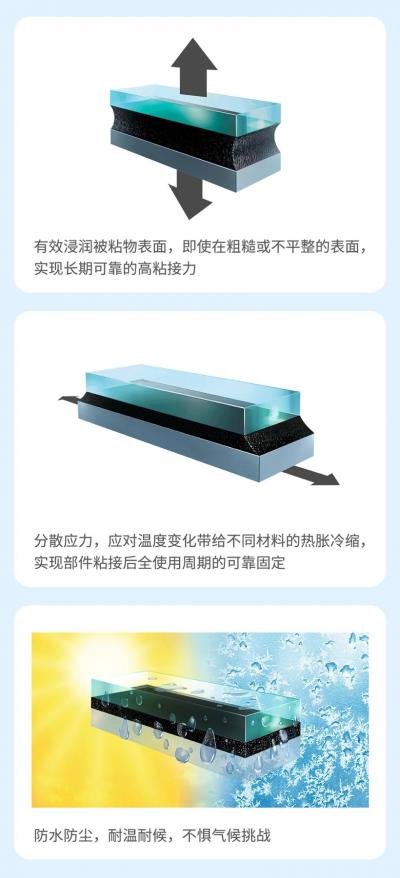 这些正是德莎丙烯酸泡棉胶带施展拳脚的地方,而秘密就在于它奇妙的粘弹性,能够提供优秀的粘接性能和抗剪切强度。