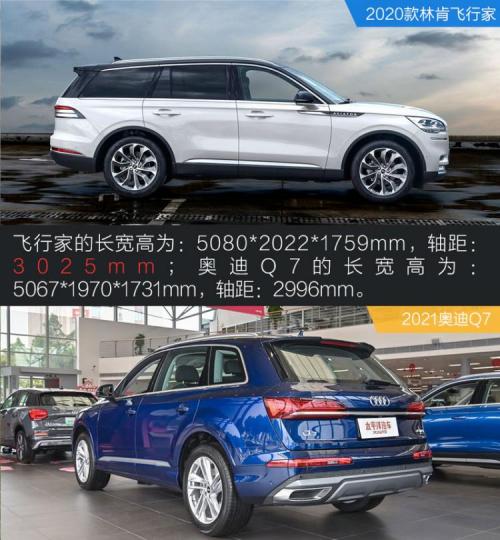 此次对比,我们选择了2020款的林肯飞行家3.0T V6四驱行政版和2021款奥迪Q7 45 TFSI quattro S line运动型,这两款车型的指导价分别为68.98万元和68.88万元,差价只有1000元,那么在这个价位下,哪个产品更具有吸引力呢?