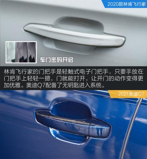 林肯飞行家进入车辆还有Lincoln SecuriCode®车门密码开启系统、PAAK智能蓝牙手机钥匙,可以通过手机进入车辆,并且可以远程启动车辆。奥迪Q7则只有传统的无钥匙进入。